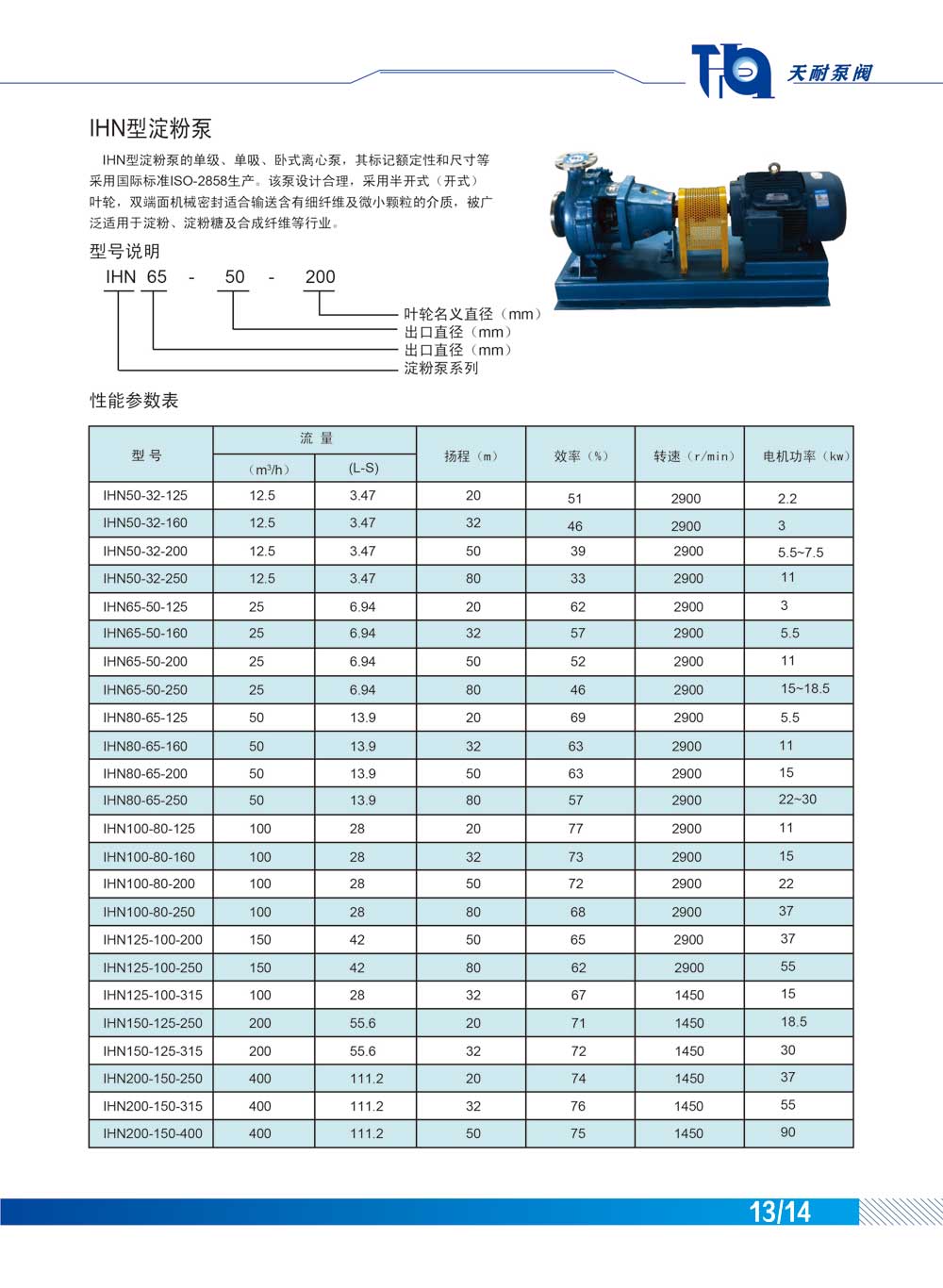 • 產(chǎn)品名稱:IHN型淀粉泵—天耐泵閥