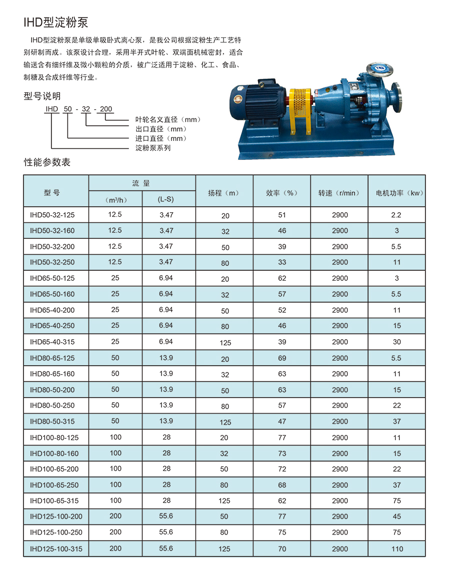 • 產品名稱:IHD型淀粉泵