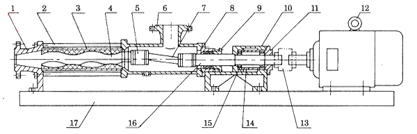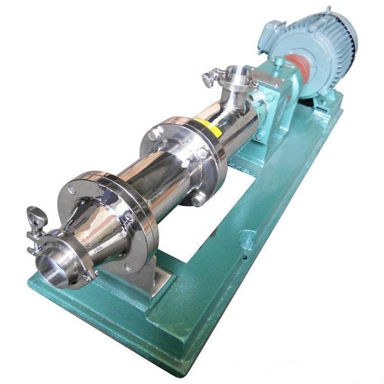 衛生螺桿泵是按迥轉嚙合容積式原理工作的新型泵種,主要工作部件是偏心螺桿(轉子)和固定的襯套(定子)。由于該二部件的特殊幾何形狀,分別形成單獨的密封容腔,介質由軸向均勻推行流動,內部流速低,容積保持不變,壓力穩定,因而不會產生渦流和攪動。每級泵的輸出壓力為0.6MPa,揚程60m(清水),適用于輸送介質溫度80℃以下(特殊要求可達150℃)。因定子選用多種彈性材料制成,所以這種泵對高粘度流體的輸送和含有硬質懸浮顆粒介質或含有纖維介質的輸送,有一般泵種所不能勝任的特點。其流量與轉速成正比。傳動可采用聯軸器直接傳動,或采用調速電機,三角帶,變速箱等裝置變速。這種泵零件少,結構緊湊,體積小,維修簡便,轉子和定子是本泵的易損件,結構簡單,便于裝拆。