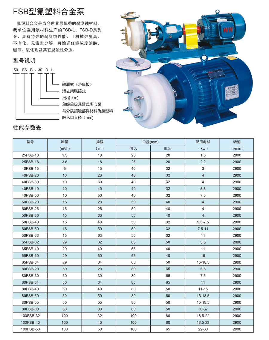 • 產品名稱:FSB型氟塑料合金泵