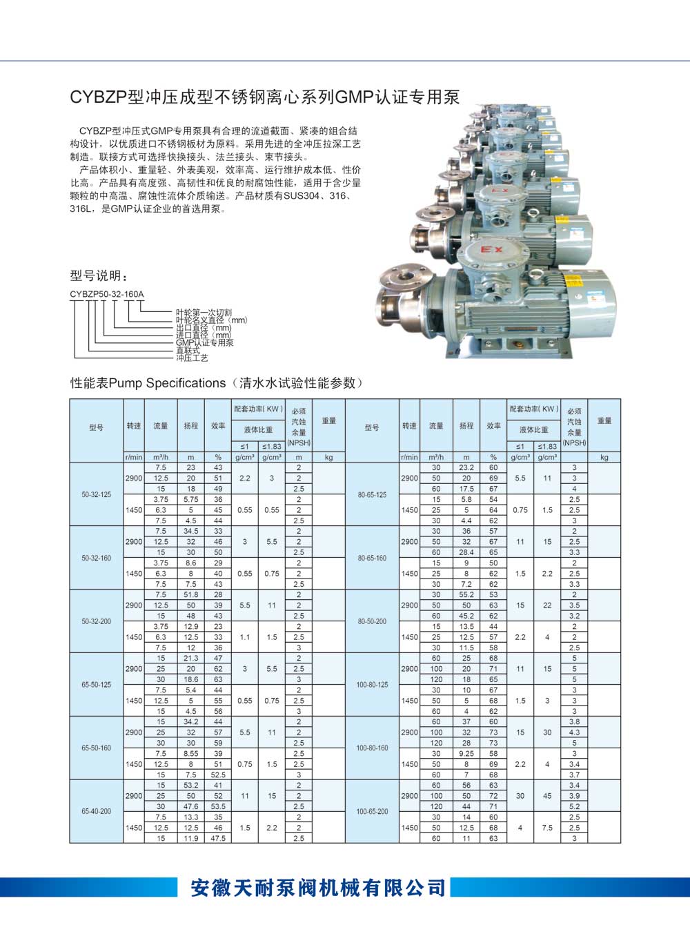 • 產品名稱:CYBZP型沖壓成型不銹鋼離心系列GMP認證專用泵—天耐泵閥